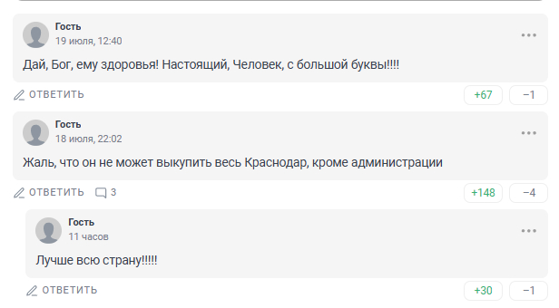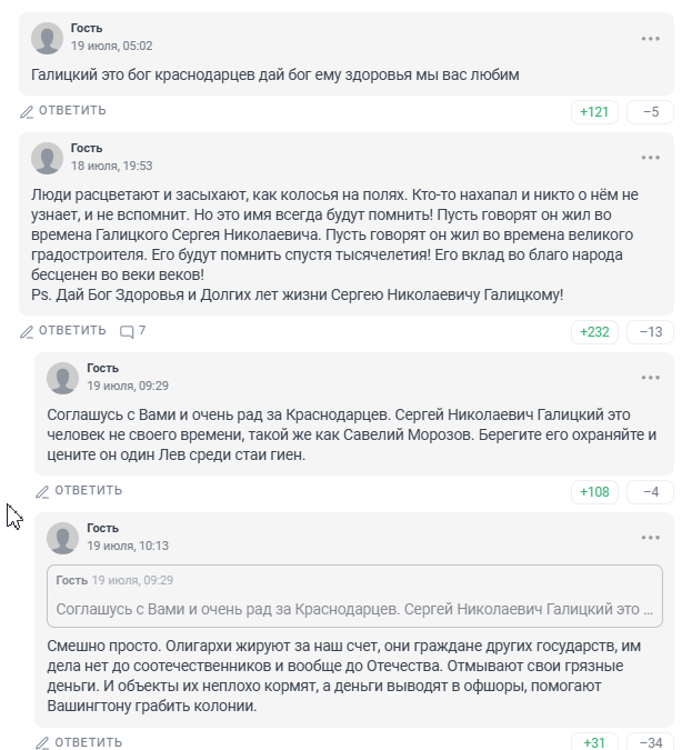 И практически все комментарии примерно в таком стиле... Что только в очередной раз подчеркивает феномен и самого миллиардера Галицкого, и отношения к нему со стороны краснодарцев (и не только).