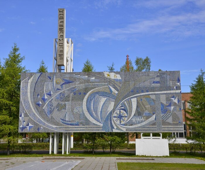 2. «Слава корабелам». Мозаичное панно на территории завода «Севмаш» в Северодвинске. Художник Анатолий Ладур, 1977–1979 годы. Эскиз мозаики был разработан в 1977 году по заказу дирекции завода.