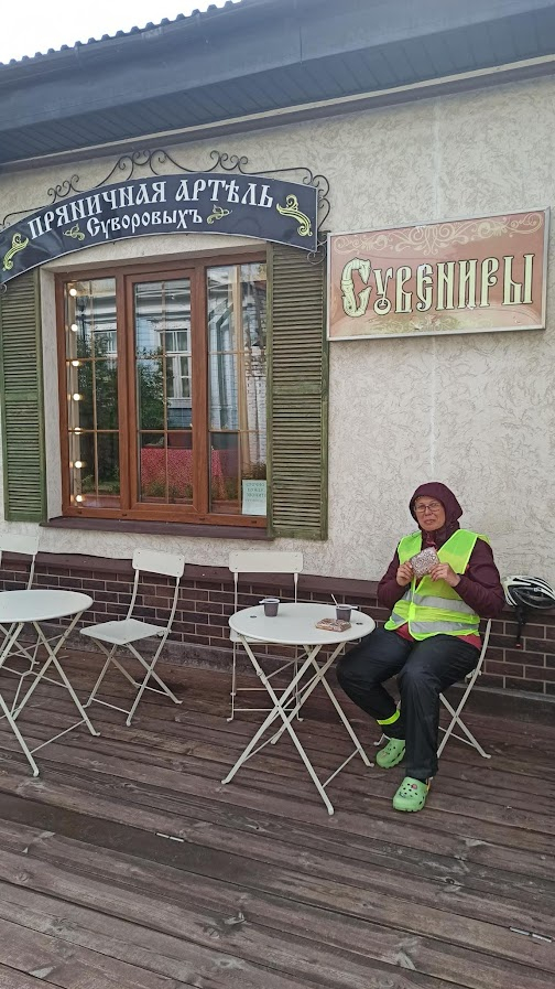 Спасибо знающим людям, своевременно нас просветившим. Теперь мы знаем, что старинный город Городец был знаменит своими пряниками. Поэтому мы не просто выпиваем чашку чая с пряником у кафешки, а пьём его с Городецким Пряником аж за 120 рублей у дверей пряничной артели Суворовых. Деньги надо признаться ребята стараются отработать сполна. Здесь широкий ассортимент предлагаемой продукции, рассказы, дегустация, гарантия качества и натуральности. В общем, грамотная работа с туристом. Горячий чай, вкусный пряник и вылезшее солнце, наполняют нас теплом и светом.