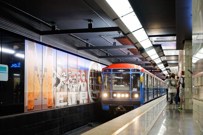 В 2002 году метро получило поезда "Русич", в которых две части длинного вагона соединены "гармошкой". В вагонах появилось яркое освещение и современная навигация с бегущими строками и наддверным табло.