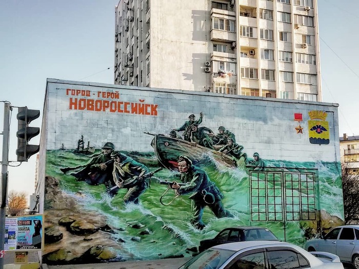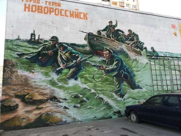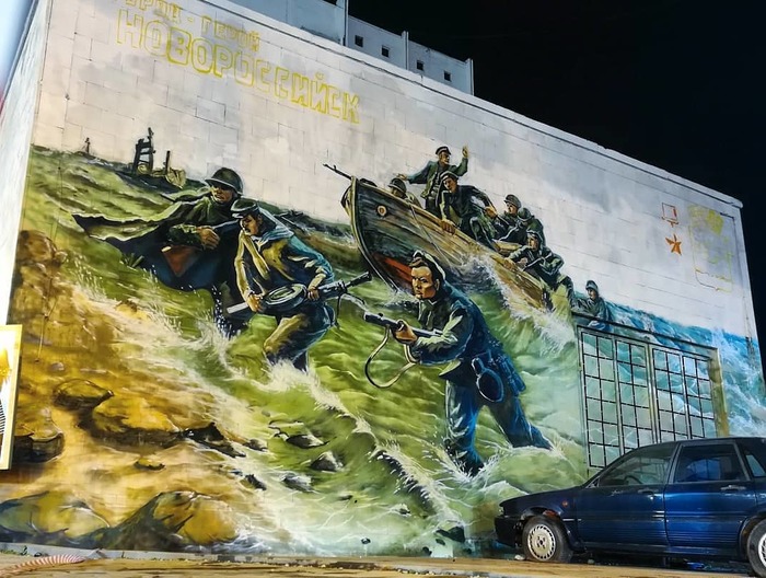 Краснодарские художники из команды STENACLUB нарисовали стрит-арт в Новороссийске, приуроченный к 76-й годовщине высадки моряков-черноморцев на Малую землю.