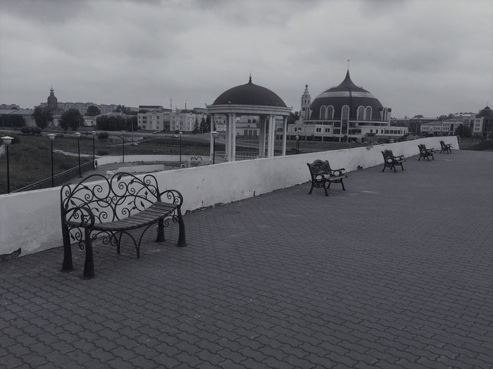 Обдумывая причину выбора столь оригинальной лавки, и разбавив собственную скуку начинаешь как-то по-новому вглядываться вокруг. Таким образом, спустя пару десятков минут, возникло желание сравнить Тулу с городом - модернистом, у которого не хватило гуаши дорисовать портрет.