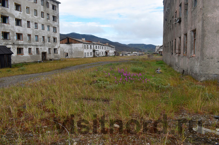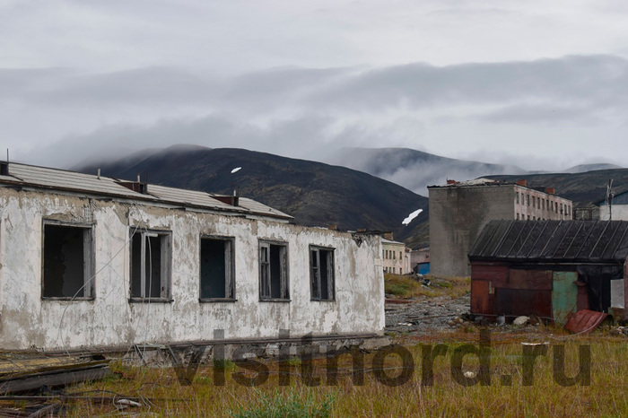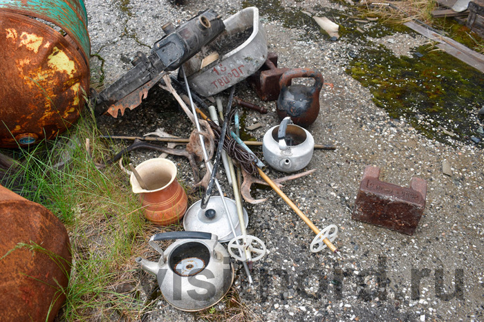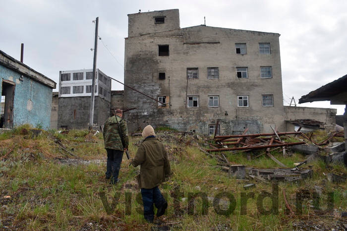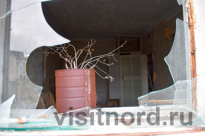 На самом деле, реальная опасность мертвого города другая. Время начинает брать свое. Не во все объекты уже стоит заходить. И на то есть несколько видимых, а гораздо хуже, если невидимых очевидных причин, чтобы этого не делать. В объекте может быть опасный, прогнивший пол, разрушающийся потолок. Но что намного хуже, это начавшееся разрушение каменных и кирпичных дымоходов и труб над крышей. В результате его по наклонным деревянным крышам домов старого Иультина времен Гулага валяются кирпичи и камни, которые не видны с земли и которые в любой момент могут прилететь вниз. Пятиэтажки еще безопасны. Склады тоже. ГОК – частично. А вот в совсем старые постройки времен ГУЛАГа внутрь уже нужно входить крайне осторожно.