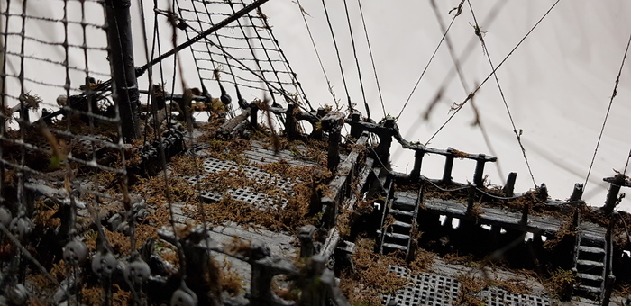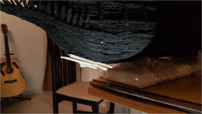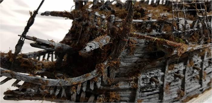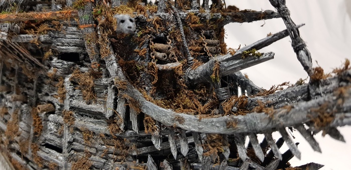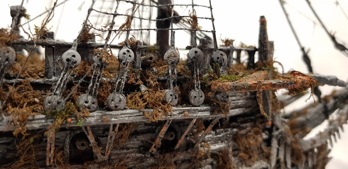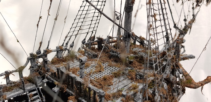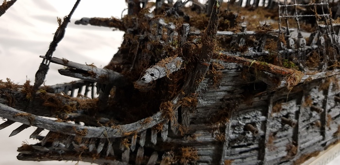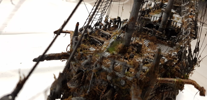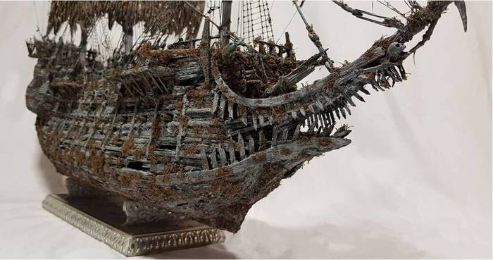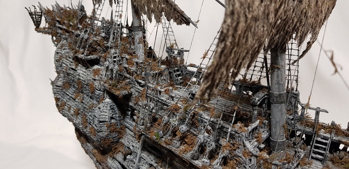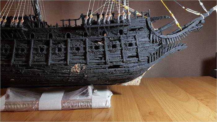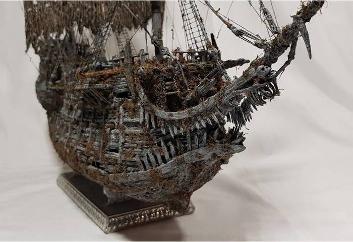 Заключительная часть постройки модели корабля "Летучий голландец" из мусора.