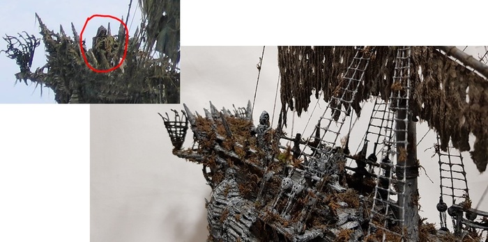 Удачных кадров из кино я не нашёл, и всё же решил сделать по Арту от американских художников. Хотя КонцептАрт отличается от корабля показанного в фильме. На пример, пушечные порты верхней палубы на Арте имеют круглую форму, а в кино они в виде арок, как у меня на модели.