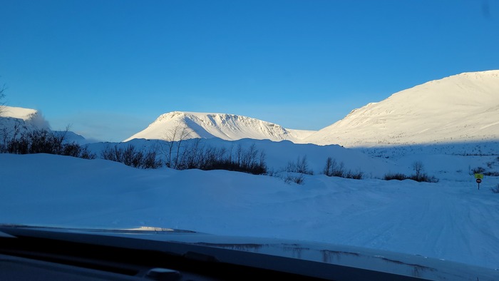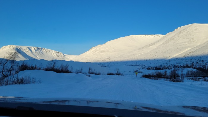 В Сегеже остановились в гостинице, ближе к 20 часам того же дня. Честно, устал, впервые так далеко ехал за рулём. На следующее утро снова в дорогу и минуя красоты Карелии, проезжаем мимо Полярных Зорей. Красивое место, как и другие места Карелии. Ещё не доезжая до Зорей увидел впервые в живую горы. Настоящие, красивые. Снежные шапки, так тепло окутывали вершины. Мне как сноубордисту, да и просто любителю природы, это как бальзам на душу.