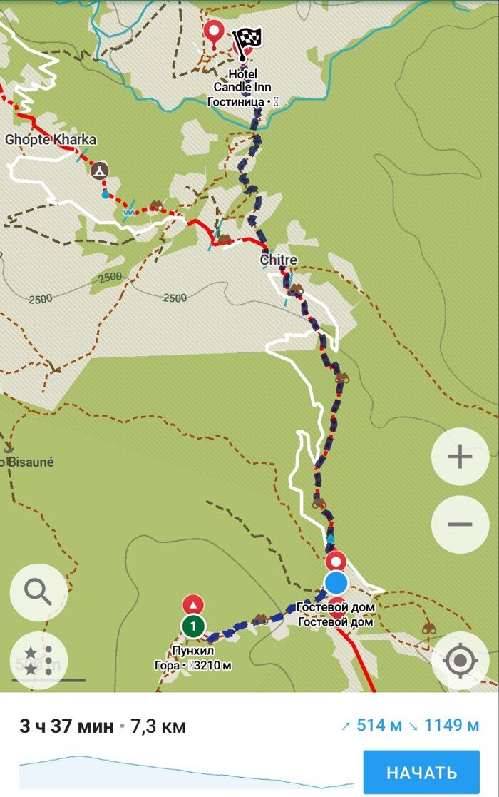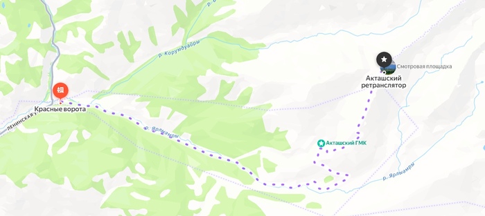 С составлением маршрута не возникло никаких трудностей — даже Яндекс-Карты прокладывают пешую тропу до ретранслятора. Идти все время нужно по дороге, по которой внедорожники везут туристов. Заблудиться просто невозможно.