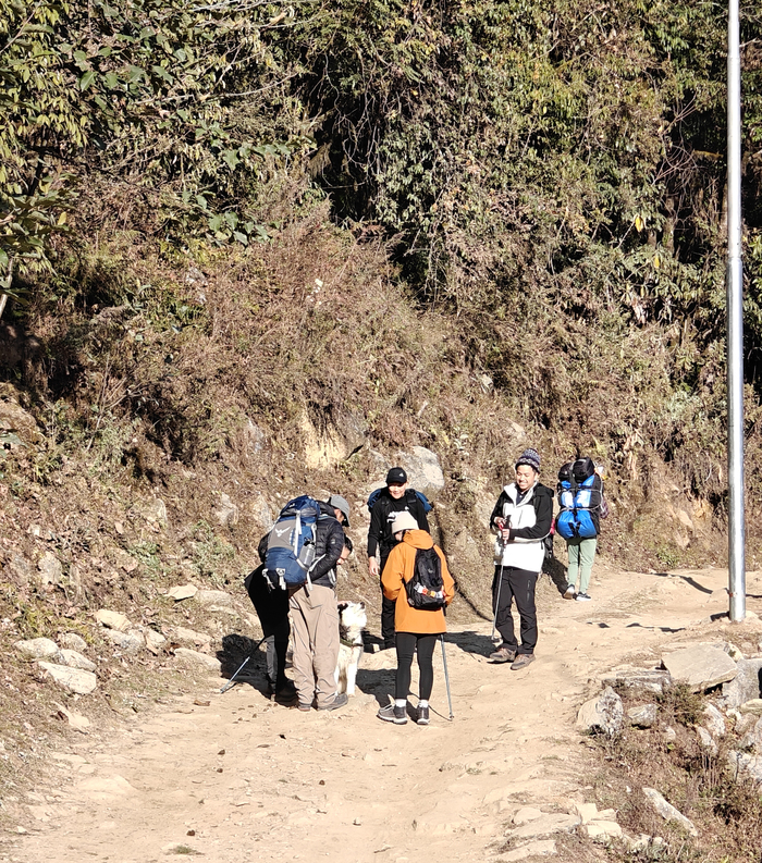 Вдобавок ко всему поднялся жуткий боковой ветер. Он буквально сбивал с ног, стоило только едва расслабиться — сносил в сторону так, что приходилось делать несколько шагов, чтобы не упасть. Упираться палками в землю, слегка группироваться и ждать, когда порыв ослабнет. У нашей собаки сдувало в сторону шерсть и даже уши))