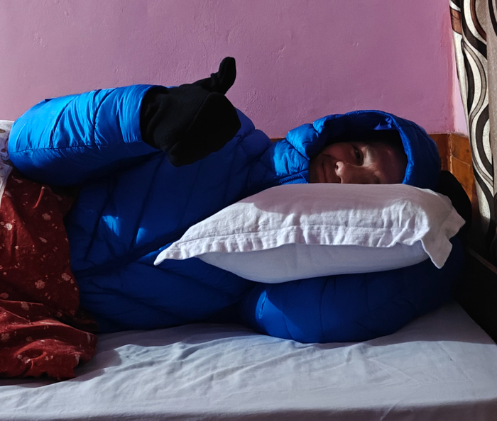 Какое-то время спустя мы почувствовали, что поднялись выше — в воздухе стало заметно холоднее, пришлось облачиться в кофты и шапки.