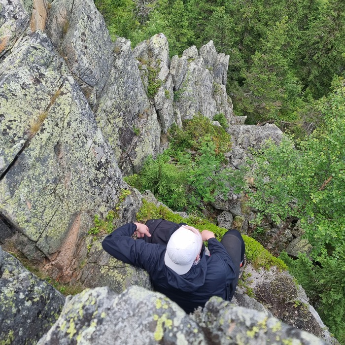 После гремучего ключа достал трекинговые палки, раньше думал, что это ужасно, что если буду идти с ними, значит я старый, сейчас я не так молод, поэтому не страшно. В этом восхождение часто отдыхали, это здорово. Дальше встали на откликном гребне, был красивый вид, удалось полежать, меня укусил красный муравей. Отдал палки Максиму.