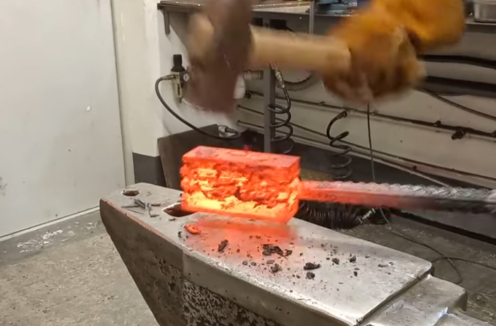 2) Пакеты проковал, выковал "бруски" квадратного сечения.