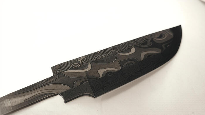 4) Из закрученных заготовок вновь сформировал бруски, соединил определенным образом, сварил кузнечной сваркой, и выковал заготовку в форме клинка: