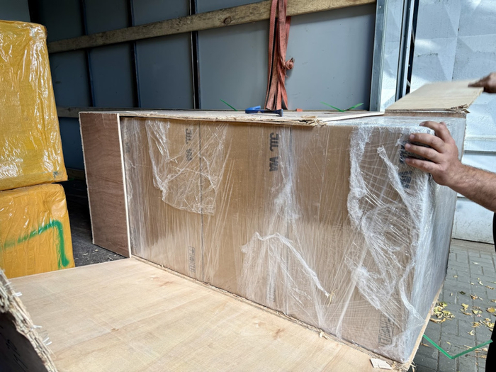 Упаковано настолько добротно, что водитель утомился вскрывать ящик. Минут 15 точно монтировочкой отбивал скрепные скобы.