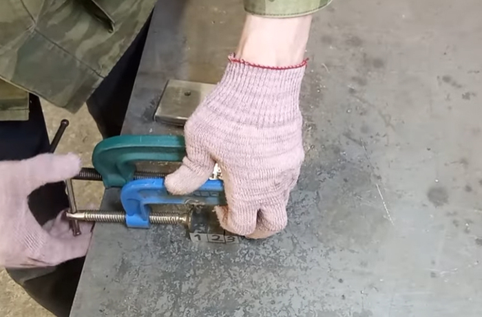 С помощью такой вот гильотины изолирую часть материала, а при оттягивании конца получаю трещину в тонком месте. Заготовка в утиль - начинаю делать шпильку заново)