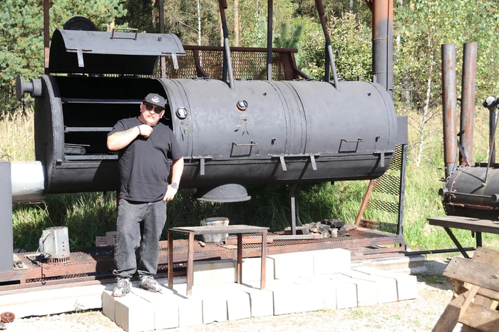 Смокер, по сути — большая железная труба. Но не всякую трубу можно положить в грузовик и привезти на новое место. Один из трёх моих смокеров, слава всем богам, вполне мобилен, на собственных колёсах. Мы его используем для выездных мероприятий, фестивалей: прицепил к фаркопу и поехал.