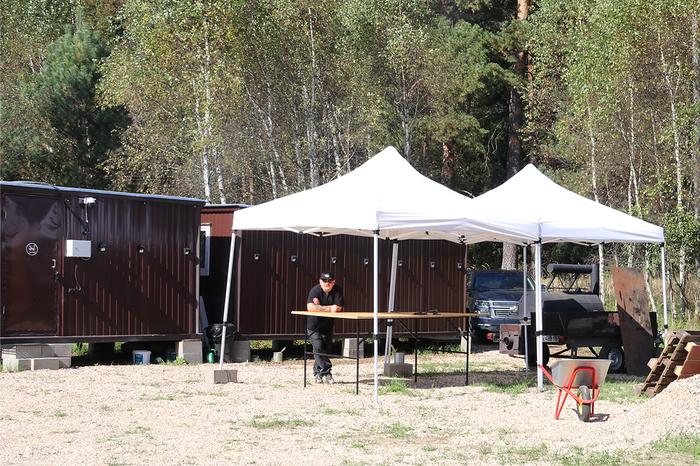 Эти блок-контейнеры — вообще полезная вещь. По сути, это бытовки, утеплённые и переделанные так, чтобы в них можно было работать и даже жить. Мы их ещё и покрасили красиво, вышло прилично, в скандинавском стиле. Например, одну из бытовок мы оборудовали для ночёвок, потому что, когда готовка мяса занимает 18 часов, иногда нет смысла ехать домой. Проще прилечь и поспать, не отходя от рабочего места.