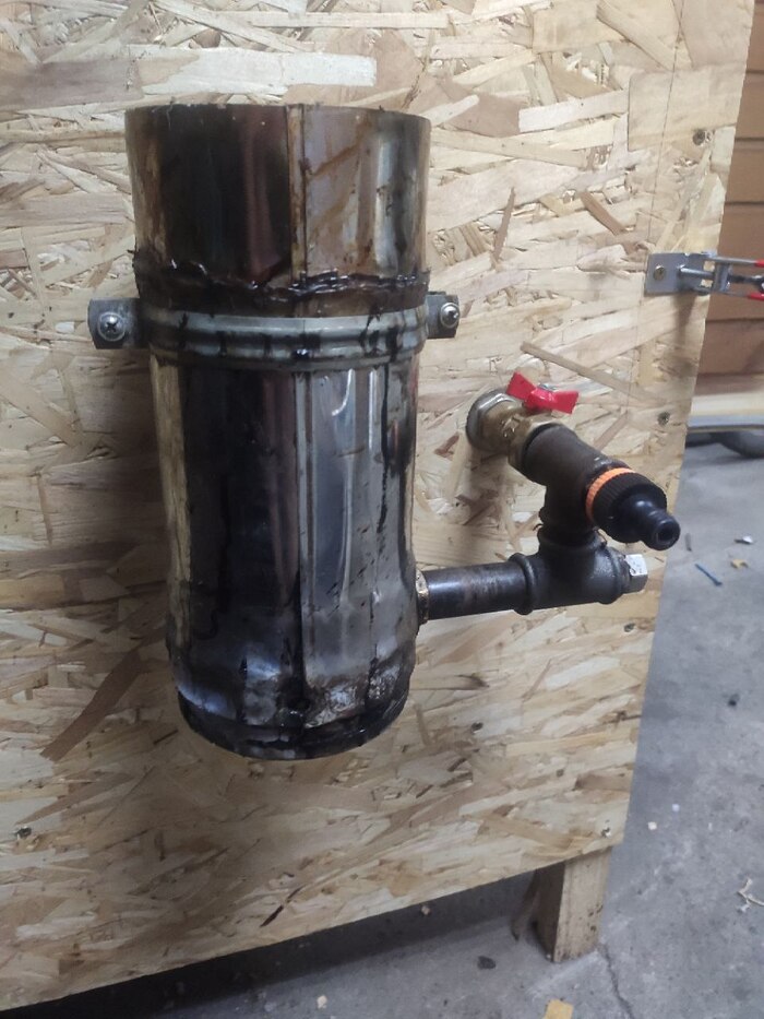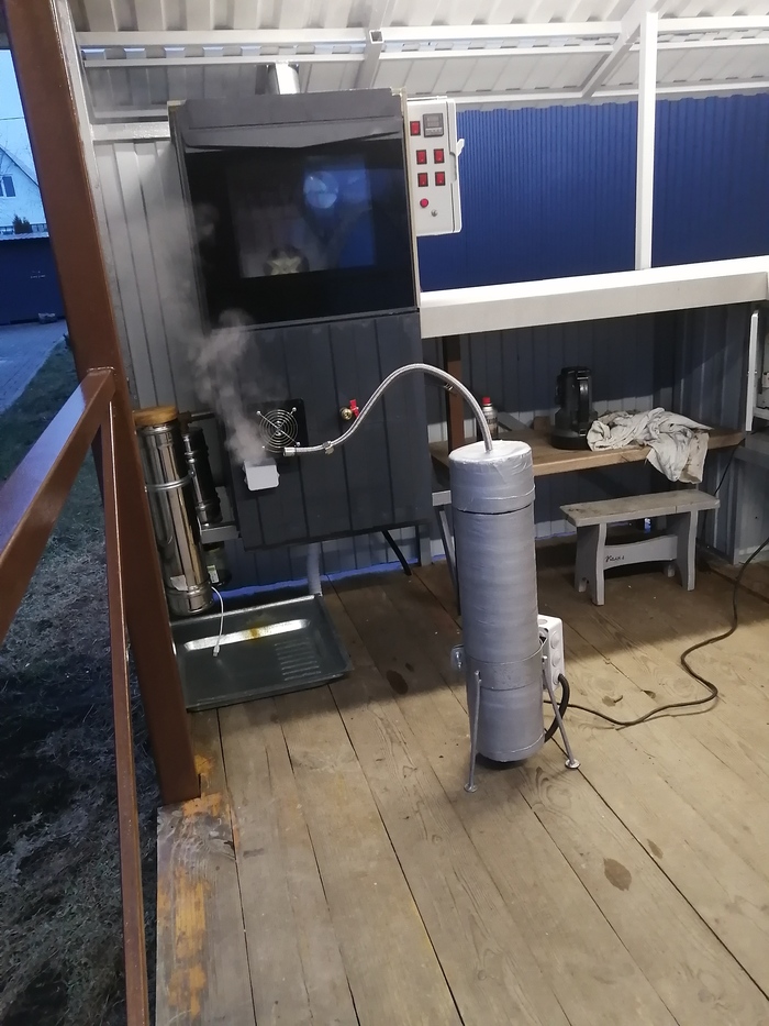убрал так называемый "холодильник", ну на улице уже стало довольно таки свежо для того что бы дым дополнительно охлаждать, а как отстойник он мне больше не нужен, так как после анализа всего вышеизложенного я теперь контролирую процесс и смол у меня просто напросто нет, соответственно и отстаивать нечего.
