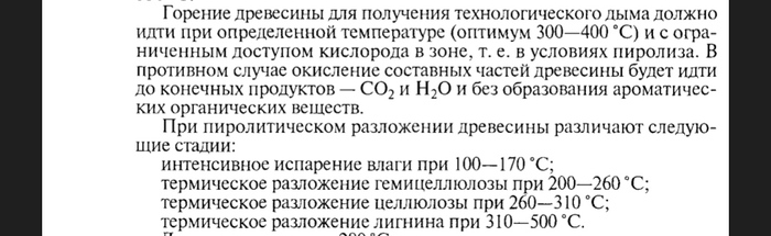 Дым полученный при более низких температурах практически бесполезен, так как содержит много пара и мало дыма.