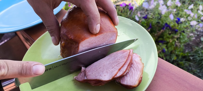 Самый лучший вариант — сожрать это горячим. Когда оно только снимается со смокера, прошло термическую обработку, чуть-чуть отдохнуло и подстыло — это самое кайфовое.