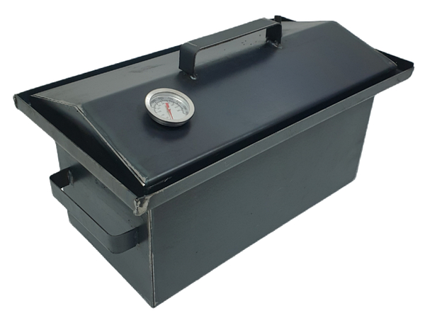 Итак, про функционал. У таких коптилок он весьма ограничен. По сути она предназначена в основном для копчения уже готового продукта, солёного сала, сыров, и прочих изделий которые уже прошли термообработку. Например вам захотелось копчёной куриной грудки. Вы её сначала отвариваете, просушиваете, а потом обдаёте дымом часа полтора в этом ящике. Провести термообработку в такой коптильне весьма проблематично, но возможно. Для этого необходим термощуп, а в идеале вот такая коптилка с термометром. (Но щуп всё равно нужен)