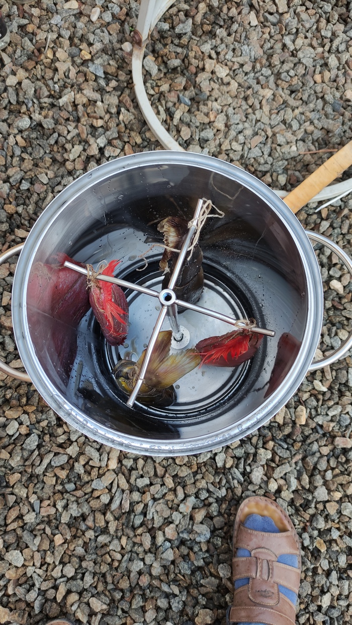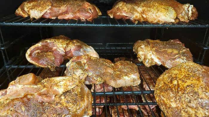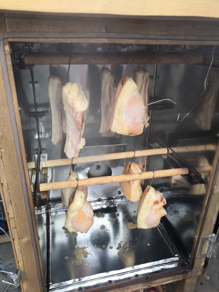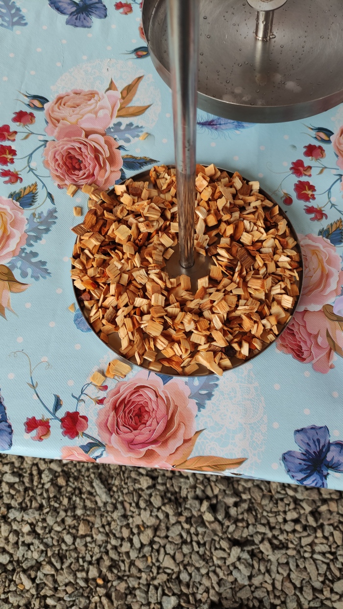 Могу по рыбе подсказать. У меня коптилка низкая, см 30 в высоту. Рыба солится сухим посолом около часа-двух в зависимости от размера, заворачиваю в вафельные полотенце, чтобы сок впитывался. Крупную рыбу разделываем на куски около 500-800 гр. Проверяется готовность засолки потягиванием рыбы за хвост и голову, должен чувствоваться/слышаться треск или хруст позвонков, т.е. соль дошла до хребта. Рыба обтирается от соли и сока. Карась, линь, плотва, красноперка, лещ, сазан, сом потрошиться, брюшко протирается насухо, окунь, судак, щука не потрошиться. Рыбу укладываем на решетку на брюшко, и ставим на ветерок, чтобы подсохла, оптимально на час- два, главное мух гонять. На дно коптильни сыпем СУХИЕ опилки лиственных пород в небольшом количестве, если нет опилок можно использовать подвяленные листья с черешками и мелкими веточками вяза, ольхи, и т.п. неплохо заходит ежевичные плети. Не использовать берёзу и тополь, даёт много смол. Точное количество дымообрвзующего материала подбирается индивидуально в зависимости от личных предпочтений и конструкции коптильни, начинать лучше с половинки горсти, если только у вас коптильня размером не с 200 л бочку))) На опилки сверху ставим поддон для жира, если нет поддона стелем фольгу, загибая края вверх. Выше ставим решетку с рыбой. Закрываем крышкой. Огонь/костер на первом этапе копчения нужен достаточно интенсивный, обязательно должна быть возможность оперативно убрать/добавить лишние дрова из костра. После появления характерного дымка (имеет сероватый оттенок) из под крышки засекаем время, дрова не подкидываем, процесс идёт на углях, если углей мало, то поддерживаем минимальный огонь под всей поверхностью коптильни, подкладывая тонкие ветки. Время копчения для мелкой рыбы( с ладошку) около 20-25 минут,крупной до 40-45 минут. После копчения, коптильню снимаем с углей и даём немного остыть в закрытом виде, минут через 10 можно открыть. Готовый продукт на решетке немного подветриваем и аккуратно отделяем от решетки. Цвет должен быть золотисто-светло-коричневый. Если получилась бледного цвета значит мало опилок, если темная (сом и линь не показатель) то много.У непотрошеной рыбы при укладке на брюшко все кишки прикипают к брюшине и легко удаляются при еде. Закладывать всякие травы и коренья в рыбу я не сторонник, обычно этим грешат коптильщики несвежей/мороженной рыбы.