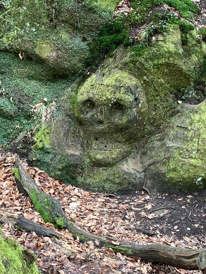 Постепенно русло расширилось, стены ущелья стали более пологими и лес подступил к самому ручью. В этом закутке деревья пока не облетели. А ещё тут растут сосны, некоторые толщиной в несколько обхватов. Даже есть уютная полянка с кострищем. Жаль, я не могу остаться здесь на ночь