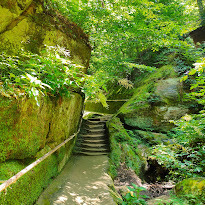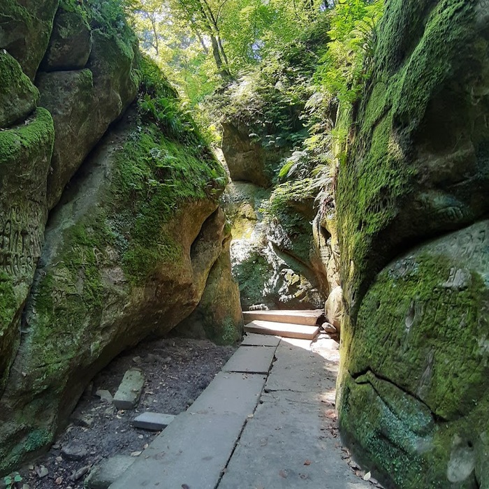 Слабая, еле заметная тропинка вела среди зелёных замшелых камней, ярко-оранжевого подлеска, пихт и гигантских грабов, спускаясь прямо в узкое, тёмное ущелье. Отвесные каменные стены тут уходят вертикально вверх метров на 15, по дну ущелья стекает тонкая струйка воды. Трудно поверить, что это начало той самой реки, которая питает несколько крупных посёлков, Горячий ключ и Краснодарское водохранилище.