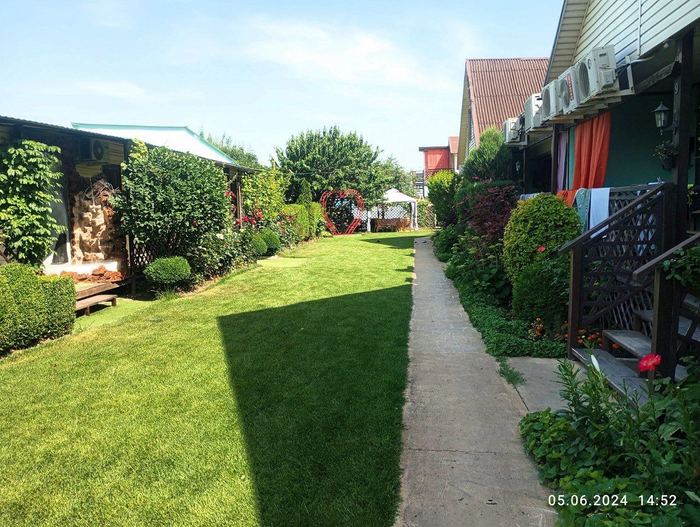 Достаточно чистые домики, но на выбор предоставляется сразу несколько видов проживания. В домике чайник, кондиционер, холодильник с телевизором. Тумбочка. Санузел совмещён. К домику идёт личная веранда со столиком. Стоимость зависит от месяца и составляет в среднем 2,5 тысячи в сутки. Сама хозяйка Ирина достаточно отзывчивая. Иными словами всё что нужно для хорошего отдыха. Рекомендую ли я для отдыха - да, не смотря на негатив. И это скорее мое восприятие шума и острая реакция на него. А свой лозунг: "к нам всегда возвращаются" оправдывает полностью!