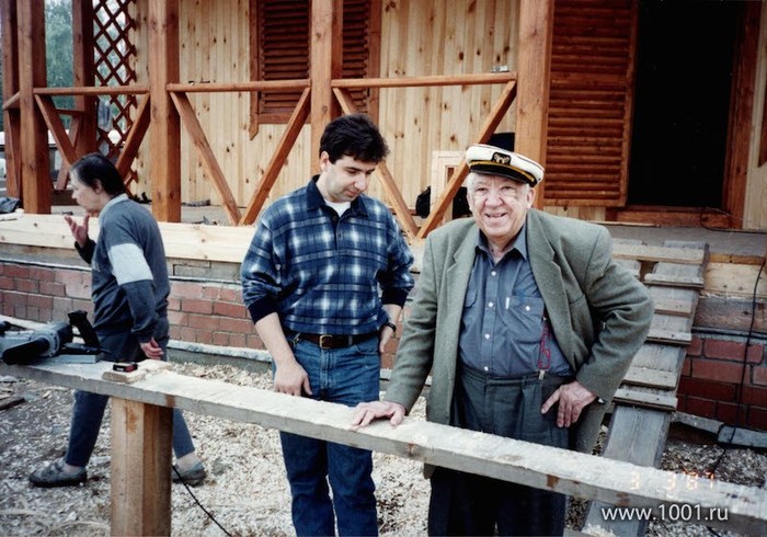 Юрий Никулин на строительстве своей дачи. Россия, середина 90-х.