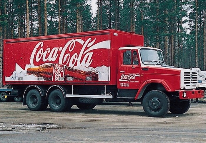 В первой половине 90-х в России стали открываться заводы транснационального гиганта Coca-Cola. Чтобы развозить продукцию компании по оптовым складам и торговым точкам Coca-Cola закупила крупную партию двух- и трехосных грузовиков ЗИЛ. Эти машины были сделаны по специальному заказу производителя напитков, имели оригинальную красно-белую окраску, специальный кузов-фургон и, главное, были оснащены американскими дизельными двигателями Caterpillar. Долгое время такие ЗИЛы встречались на улицах разных российских городов
