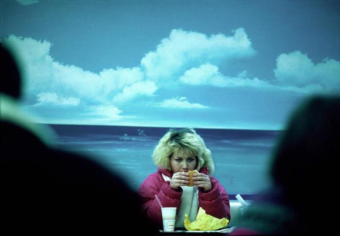 Девушка впервые пробует еду из "Макдоналдс". Россия, Москва, 1993 год.
