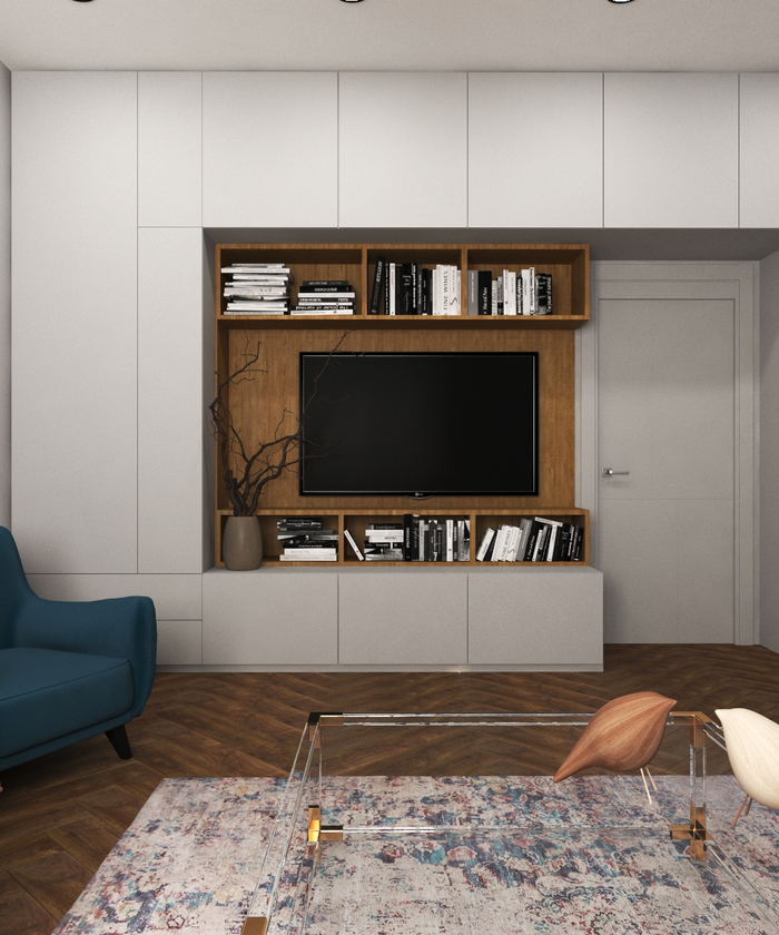 Опять же смотрите насколько ненавязчивы и спокойны стены. Акцент берет на себя что-то одно. В данном случае это ковер с диваном. Все остальное подчиняется и находится в тени одной интерьерной доминанты.