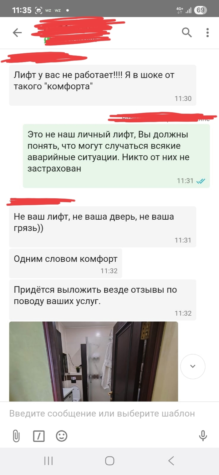 Заезжает к нам семья. Накануне заезда мы узнаем, что в подъезде, где находятся наши апартаменты, не работает лифт, о чем предупреждаем гостей - в ответ поступает вопрос, направим ли мы кого-нибудь, кто поднимет им чемоданы на этаж. На что мы растерялись и объяснили разницу между отелем и посуткой и что швейцаров, поваров, переносчиков багажа и другого персонала, свойственного отелям, у нас нет. Ответ не был однозначно негативный, но и ощущения понимания со стороны гостя не ощущалось.