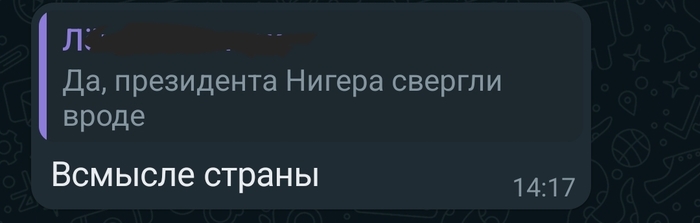 Ах, да США уже осудили попытку военного переворота и призвали освободить президента: "Что этот Нигер себе позволяет?" (не совсем точная цитата)