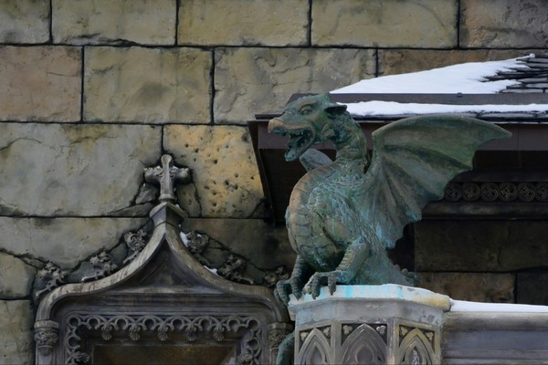 На фасаде сидят дракоши