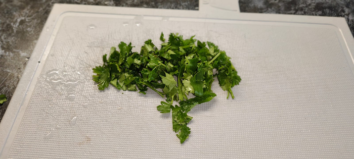 Яйца режу ножом на не сильно мелкие кубики. Можно натереть на терке, но я не стал морочится.