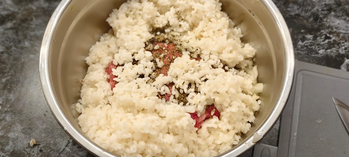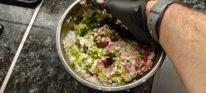 Подаю с котлеткой. Куринную из своих заготовок достал и пожарил. Это вкусно!