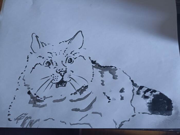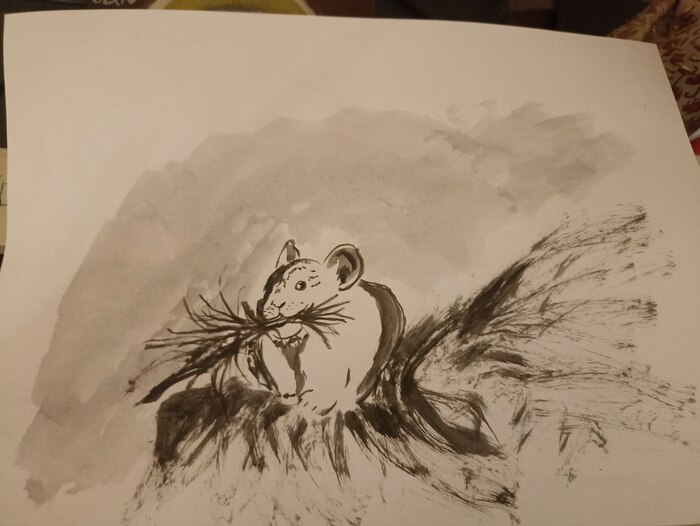 [моё] Гохуа Рисунок Творчество Рисование Кот Тушь Длиннопост