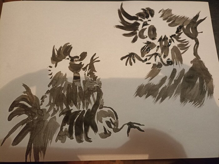 Живопись тушью делят на два направления гун-би и сэ-и. Гун-би переводят как «точная кисть» - это контурное изображение предметов. Вот как на мой взгляд, да, красиво, но что-то в этом теряется. Огромное внимание тут уделяют детализации и достигают в этом такого мастерства, что при увеличении, например изображения богомола, у него можно разглядеть чешуйки и мелкие детали лап. Сэ-и «свободная кисть» - это наиболее близкое мне по духу направление гохуа. Я его ассоциирую с импрессионизмом, если приводить аналогию с живописью Европы. Да и мало кто знает, что Ван Гог вдохновлялся дальневосточными мастерами рисования тушью и хотел воплотить некоторые их идеи у себя на родине. А импрессионизм и китайскую живопись для себя я нахожу таким венцом развития изобразительного искусства всего человечества.