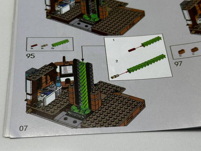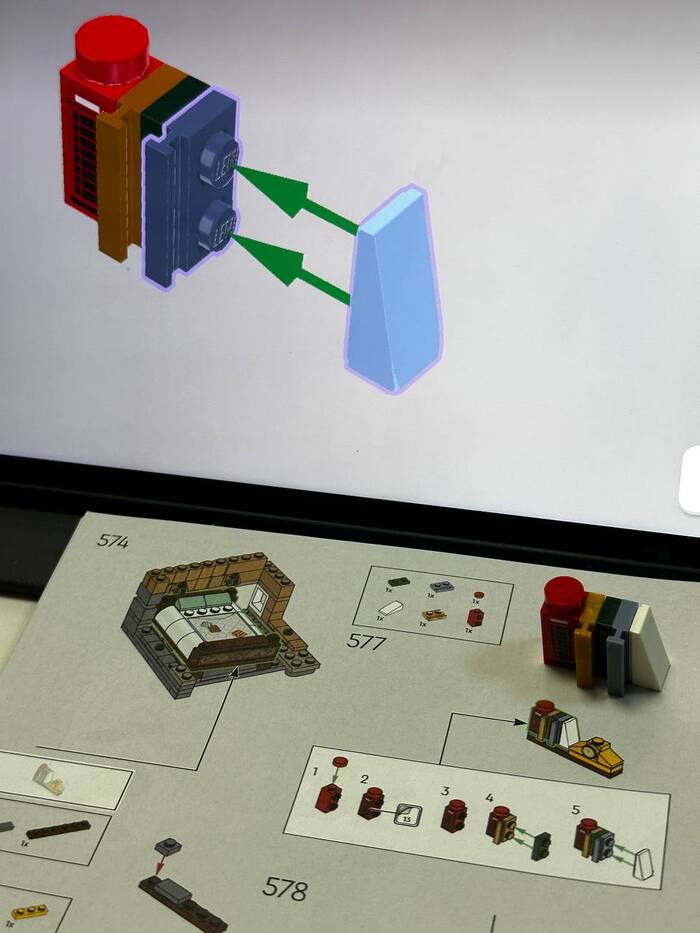 ⚠️ 1. Ловушка на 95-м шаге (Внимание!) При сборке механизма камина нужно соединить зеленую спираль. Соединительная деталька очень мелкая. Я по привычке вдавил её до конца, и она провалилась внутрь другой детали. Достать невозможно. Пришлось лезть в свои запасы за новой деталью. Совет: Вставляйте её только наполовину!