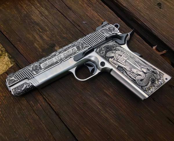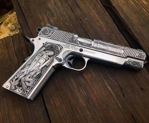 Американский оружейник Джессе Джеймс изготовил этот (полностью работающий) пистолет .45-го калибра для 45-го президента США Дональда Трампа.