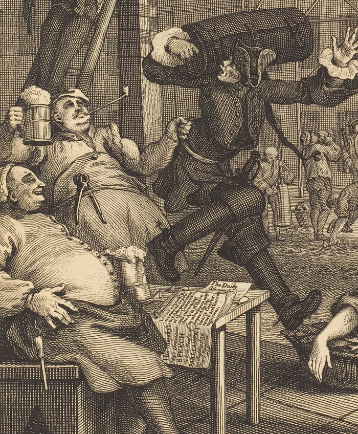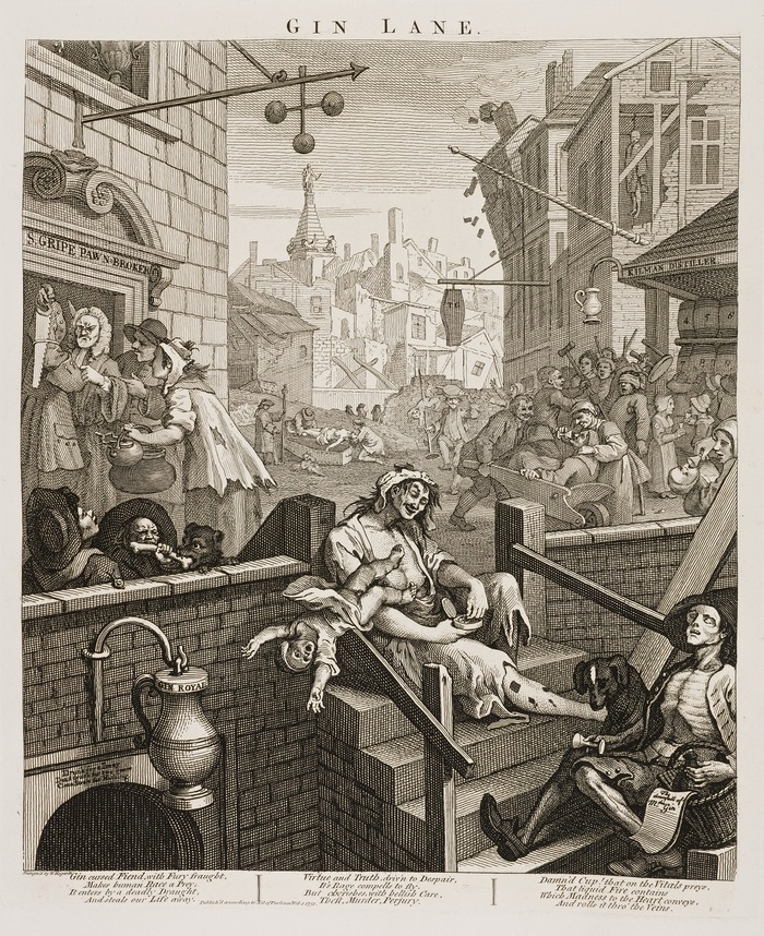 Ну и что называется культурная общественность тоже подключилась. Широко выступали против джина Даниэль Дефо и Генри Филдинг. Не остался в стороне и Уильям наш Хогарт.