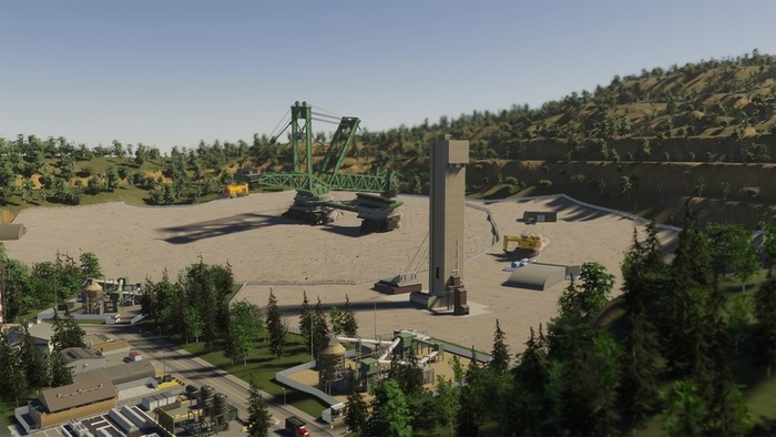 Определите зону добычи и наблюдайте за тем, как здания и транспортные средства приступают к работе по добыче природных ресурсов