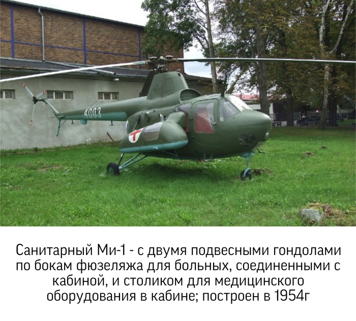 Ми-3 - Ми-3 является результатом более глубокой модернизации Ми-1. Он был создан по заказу военных для медицинских нужд. От базового варианта Ми-1 отличался новым четырёхлопастным несущим винтом, более комфортабельной кабиной, также была изменена конструкция фюзеляжа, по бокам установлены подвесные гондолы для перевозки больных и раненых.