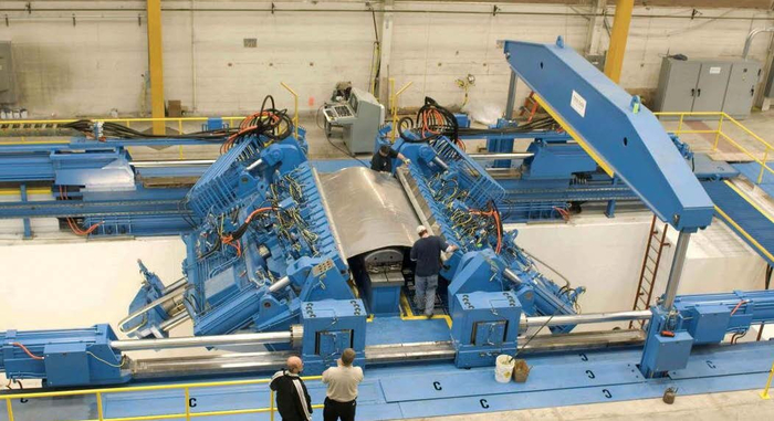 При освоении выпуска компонентов для самолета «Суперджет-100» перед инженерами КнААЗ встала задача изготовления обшивок фюзеляжа и дверных окантовок из деформируемых алюминиевых сплавов. В зависимости от формы деталей применяются два принципиально разных метода производства.