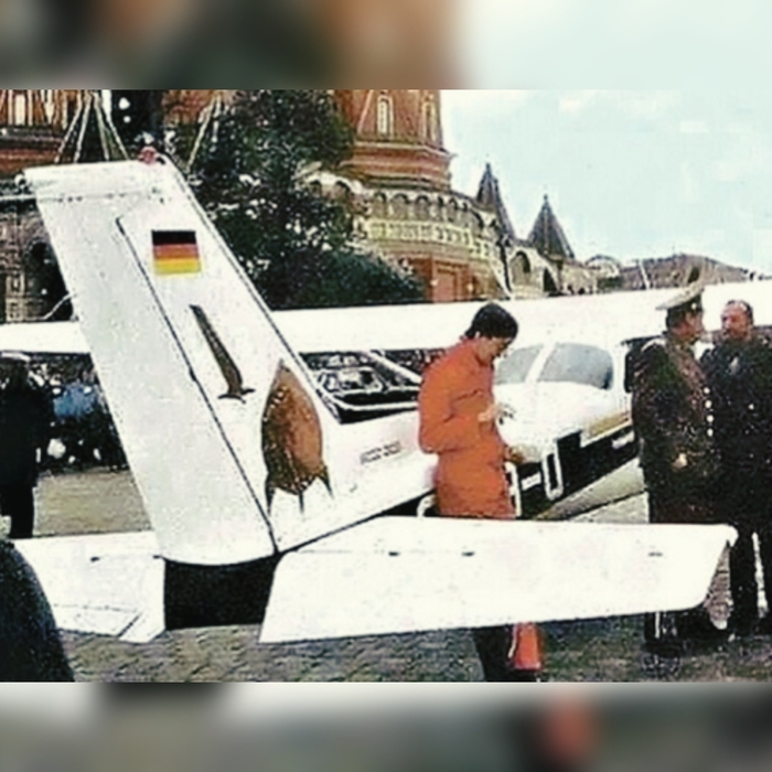 Cessna стоит в центре Москвы, а рядом с ней - растерянная толпа. Первое, что слышит Руст после выхода из кабины: