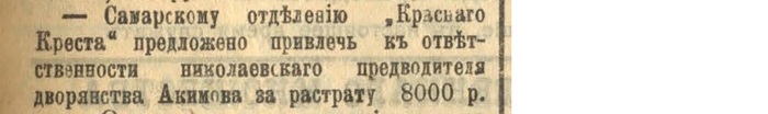 "Бывший нижегородский губернатор барон Фредерикс, преданный суду по обвинению в лихоимстве в связи с поставками хлеба для Нижегородской губернии, по слухам скрылся из пределов России."