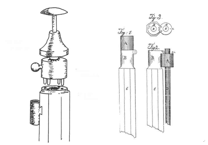 Стрелки и оружейники нашли еще один фактор, влияющий на точность выстрела. При стрельбе из дульнозарядного оружия часто повреждался канал ствола у дульного среза и сам дульный срез. И в 1840 году американский ученый Элван Кларк предложил оружейнику Эдвину Вессону использовать изобретенную им насадку «False Muzzle». [15] Насадка не только калибровала пулю, но и защищала от повреждений дульный срез и ствол. После заряжания насадка снималась или откидывалась вниз.
