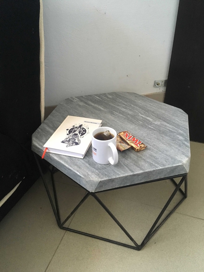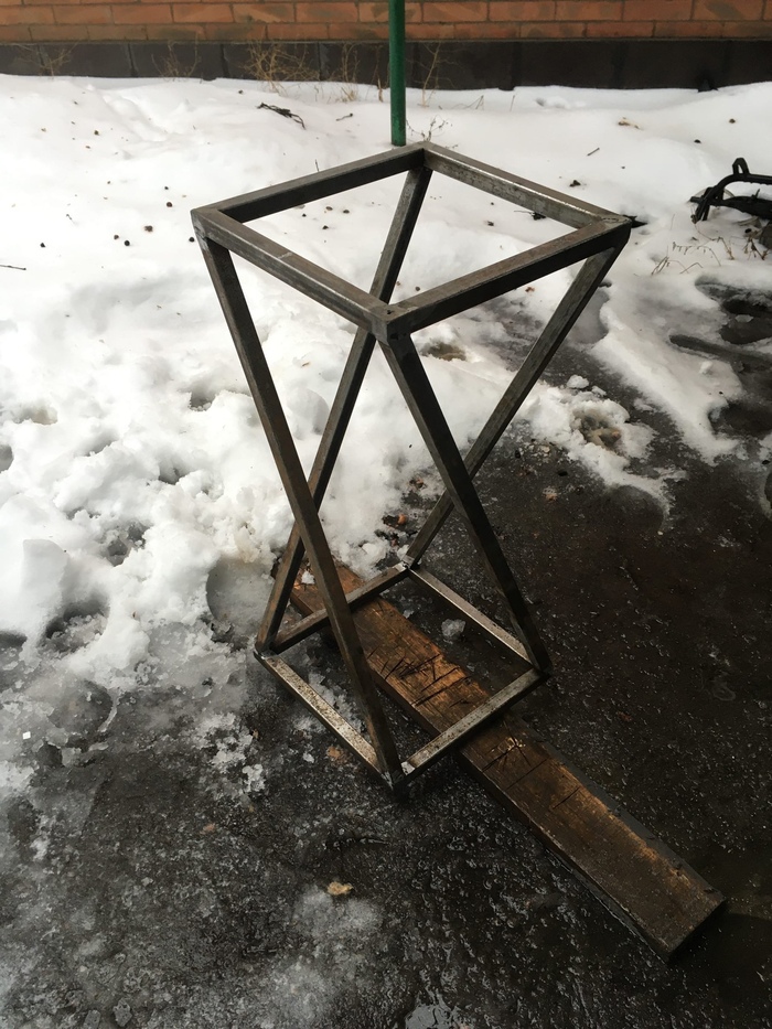 В 2018 году мы открывали новый офис, дизайном и интерьером которого я занимался сам. На одном сайте мне понравился дизайнерский журнальный столик, очень захотел себе в офис такой, но цена - 55 тысяч рублей делала кусь внутреннему еврею. Однако желание все-таки было сильное, я уже представил как он отлично вписывается в офис около дивана для клиентов. Решил сделать своими силами. Сварили каркас из арматуры катанки, отдал на покраску.