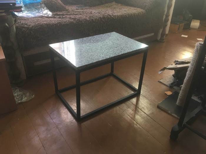 Когда мониторил просмотры объявления, авито в подборке пихало разную мебель в стиле лофт. Задумал поэкспериментировать сделать минималистический столик в стиле лофт с гранитной столешницей, именно покост (сорт гранита, который серого цвета)